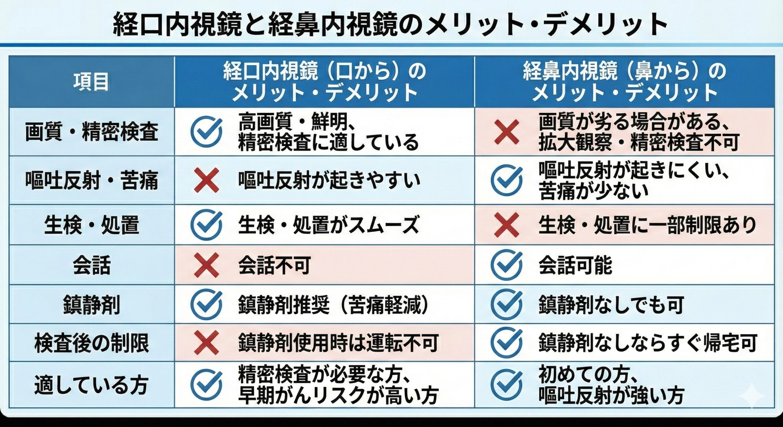 このページでは、経口内視鏡と経鼻内視鏡それぞれの特徴、メリット・デメリットを分かりやすく解説し、あなたに最適な検査方法選びをサポートします。